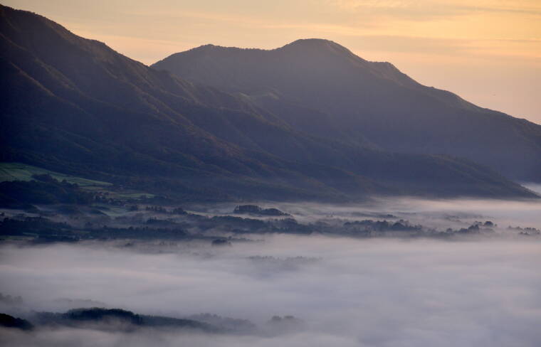 蒜山高原はかつて湖でした。100万年前の地殻変動により蒜山三座が誕生し、それまでの水の流れが変わり、蒜山湖が誕生したといわれています。雲海の様子が、かつての姿を想像させてくれます。※関連項目【たった100万年のおくりもの特集】はこちら
