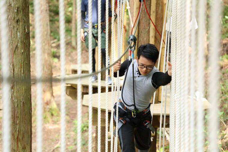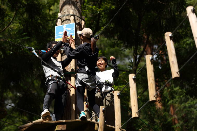 中和(ちゅうか)地域の森を使い、ツリートップアドベンチャーや湿原の上を飛ぶ「ジップライン」など、自然豊かな里山で思いっきり体を動かしてください。