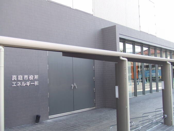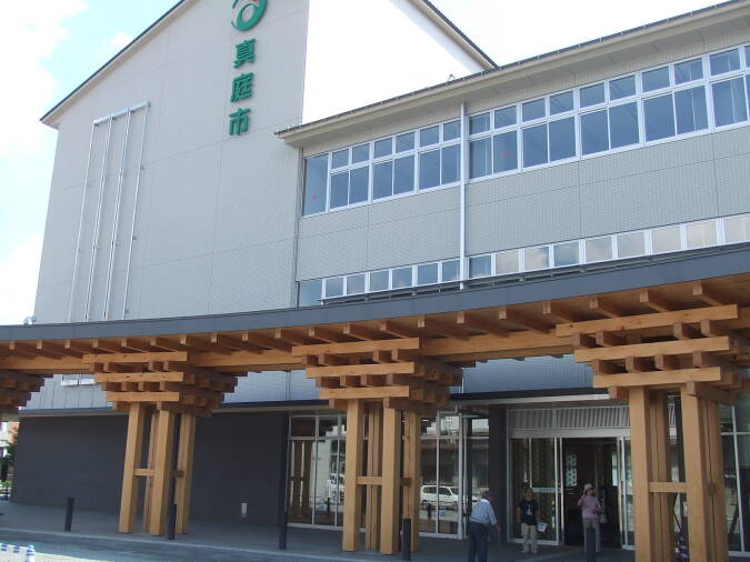 2011年4月開庁した真庭市役所本庁舎は、家具、内外装材などにいたるまで真庭産の木材をふんだんに利用し、100%自然再生エネルギーを活用しています。(木質ペレット・チップ冷暖房・太陽光発電)また、電気自動車(EV)の急速充電器も設置された環境に配慮した公共施設です。バス待機所はCLT(直交集成板)製です。