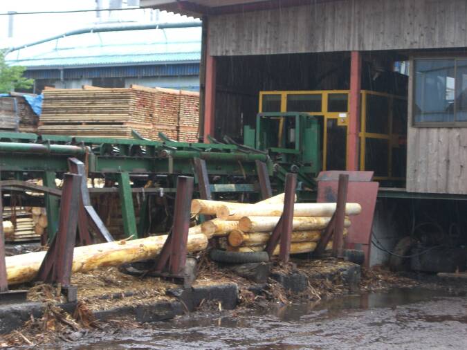 【見学概要】古くから木材業が盛んな真庭地域では、現在も製材所が約30社あまりあります。製材所の製造工程で出る木くずは、全て木材乾燥用蒸気ボイラーの燃料源として利用。