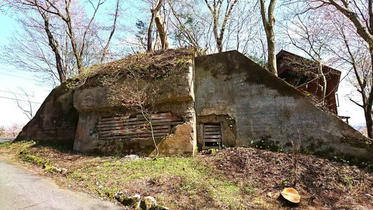 砲弾の着弾を目視確認するための「監的哨」。演習では蒜山三座の中腹に向かって野砲(やほう)の射撃訓練が行われました。コンクリートなどで覆われた堅固な拠点「トーチカ」、攻撃の際には進軍の砦(とりで)となり、防御の際には銃口を向けて徹底抗戦する拠点です。敵の攻撃から身を守るための地下壕は、蒜山に2か所確認されています。