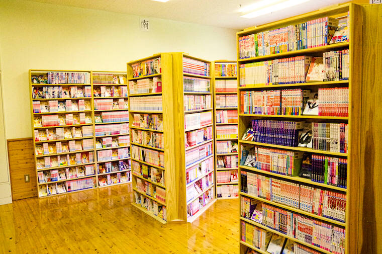 好きな漫画を見つけて、エコバッグ制作体験などのワークショップができます。グランドや体育館の利用も可能。教育旅行では、