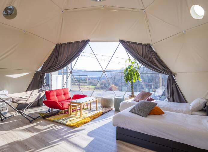 ンピング5棟(ドームテント×3棟 コンテナキャビン×2棟)