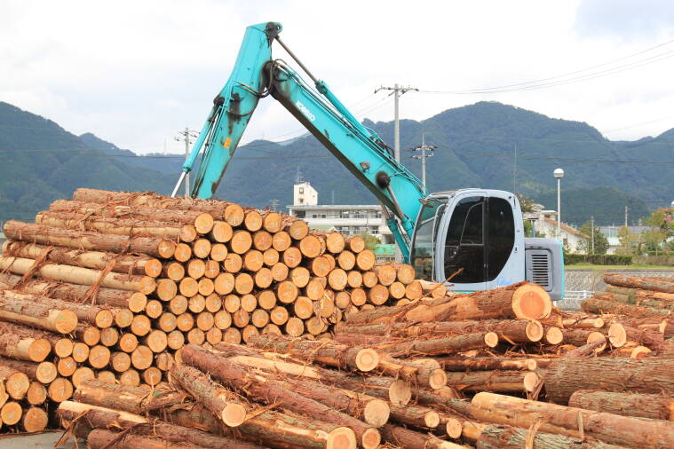 真庭内の森から切り出された木材は、原木市場に出荷され製材所等へ販売されます。