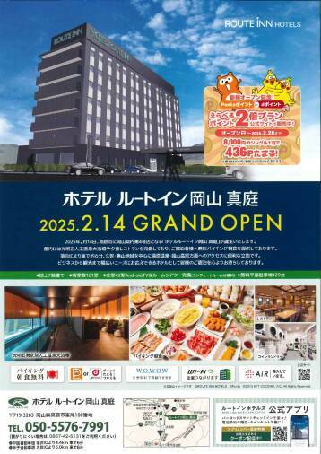 岡山県内第4号店となる「ホテルルートイン岡山 真庭」が誕生。