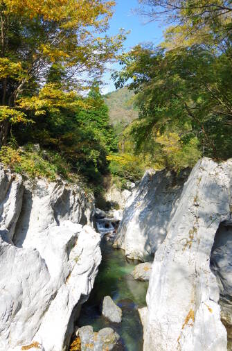 新庄川の清流で浸食された雪白の石灰岩が奇岩を創り出し、その見た目がまるで「龍宮」をイメージさせることから、この岩を「龍宮岩」と呼ぶようになりました。