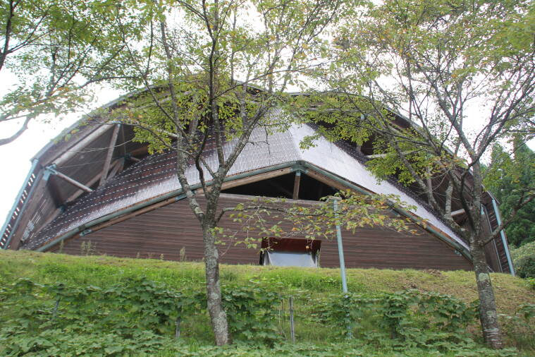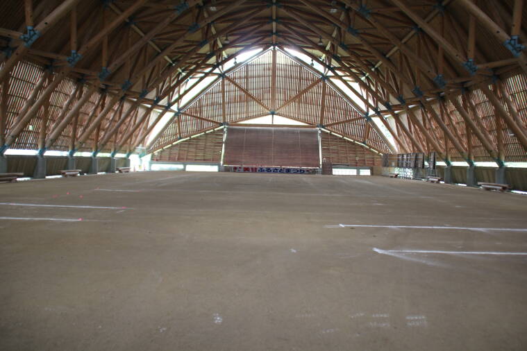 地元木材で建設された「ドーム型屋根付きの屋内グラウンド」で、さまざまな形態の合宿やイベントに使える施設です。