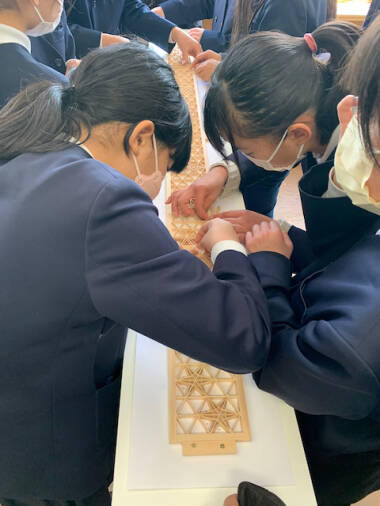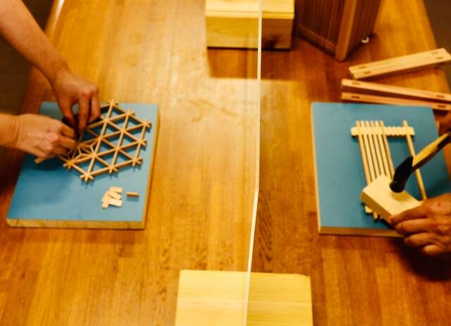 飛鳥時代から続く組子細工の模様には、魔除け、祈願などの願掛けや演技を祝う意味が込められています。