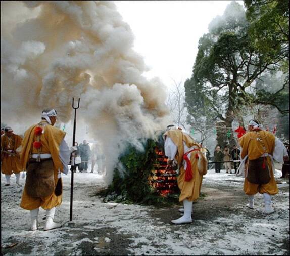 境内では柴燈大護摩供が厳修され、無病息災の火渡り・古いお札等のお焚き上げが行われます。