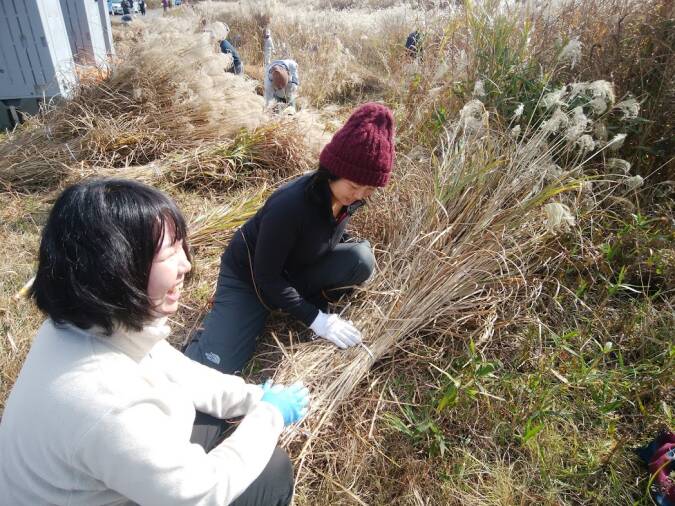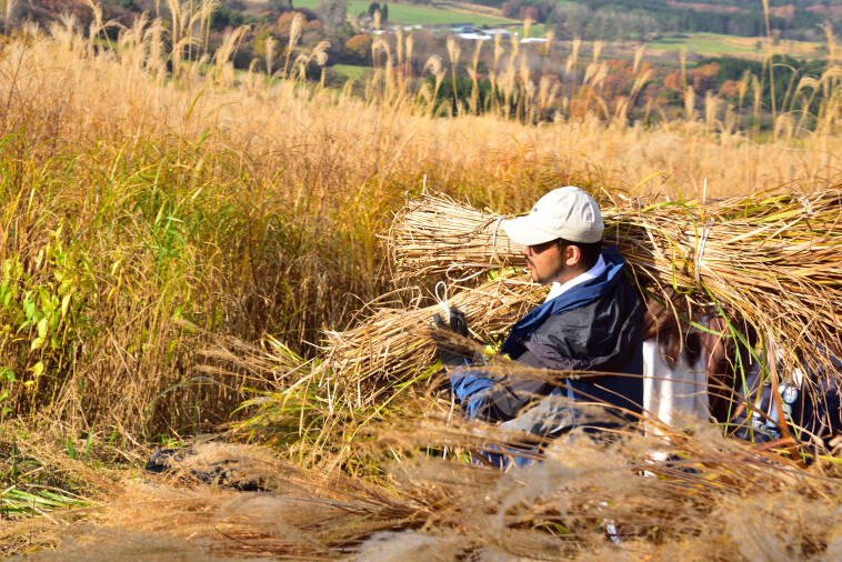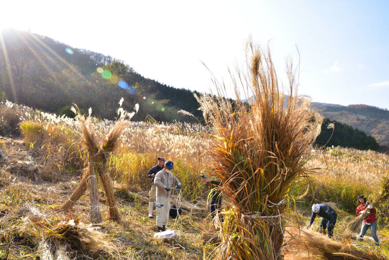 毎年春に行われる「山焼き」のための準備作業(防火帯の草寄せ)と、蒜山茅刈出荷組合の方の指導で草原のススキを刈り取って束ねる「茅刈り」を体験してみませんか?