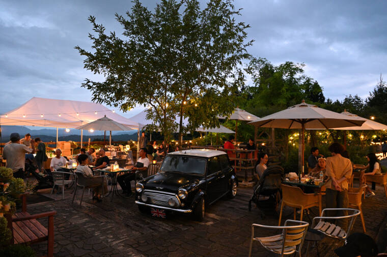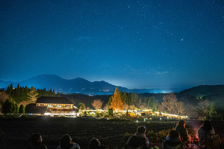 蒜山スターウォッチングでは、蒜山ハーブガーデンハービルの園内を特別開放して星空観賞会を開催します。夜のガーデンと蒜山三座を望む星空をご覧いただきながら、ドリンク(アルコールを含む)や軽食をお楽しみください。