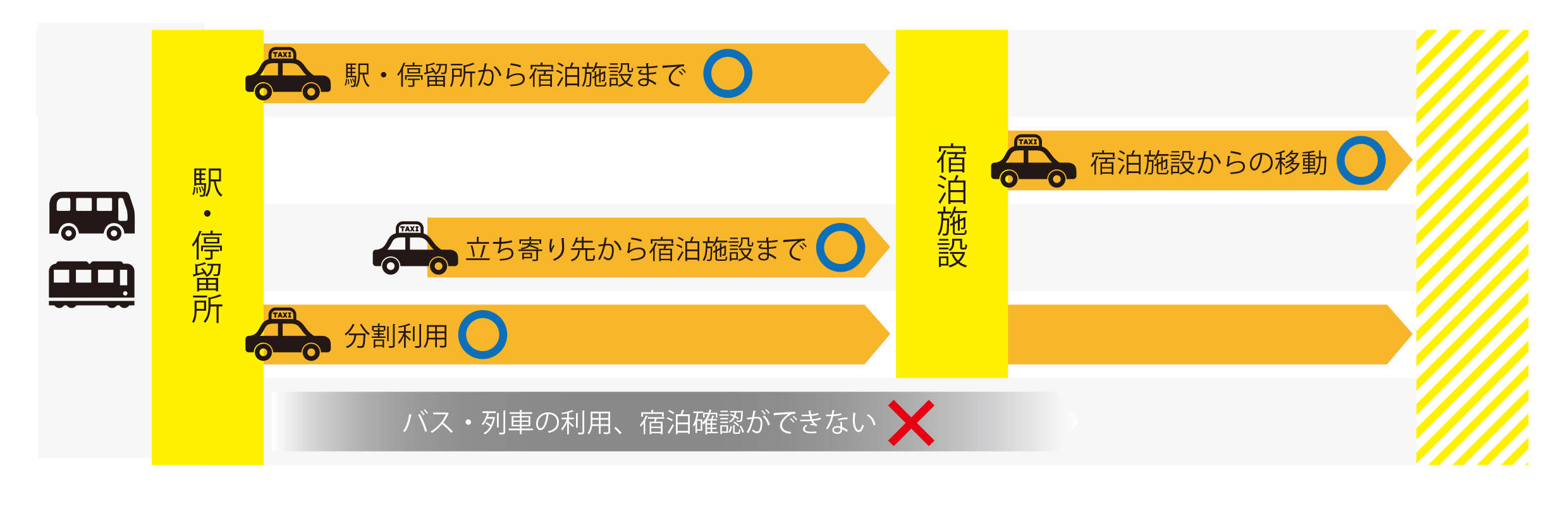 宿泊者向け交通助成(高速バス・JR・飛行機利用者へのタクシー助成)