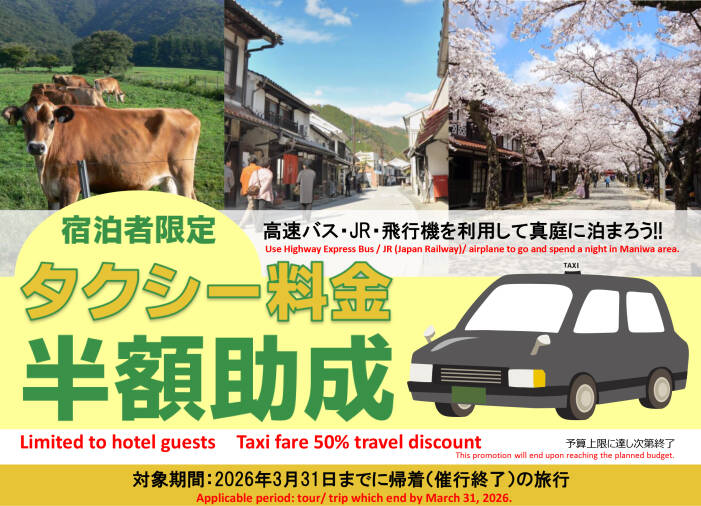 \ 真庭市・新庄村に宿泊される方限定、タクシー料金半額キャンペーン /
