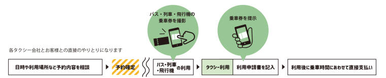 高速バスやJRまたは飛行機を利用して来訪される宿泊者に、タクシーの運賃助成を行います。