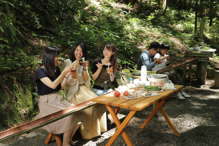 中和の山乗渓谷に開店する茶店「涼水亭」で楽しめるそうめん流し。