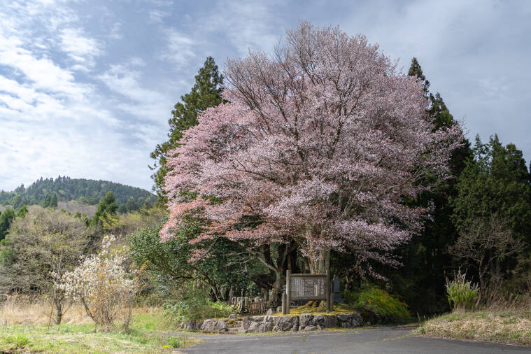 例年の見頃は4月下旬で、見頃期間には薄い紅色の美しい桜を咲かせます。