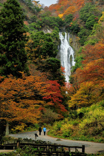 周辺には野生のニホンザルが生息しており、愛嬌いっぱいに迎えてくれます。道中には、葺き屋根から落ちる雨垂れにも似た風景が情緒を誘う「玉垂の滝」などもあります。渓谷林もすばらしく初夏の新緑と秋の紅葉が見事です。これらを含む周辺は、国指定(昭和5年)の名勝、県立自然公園に指定されています。