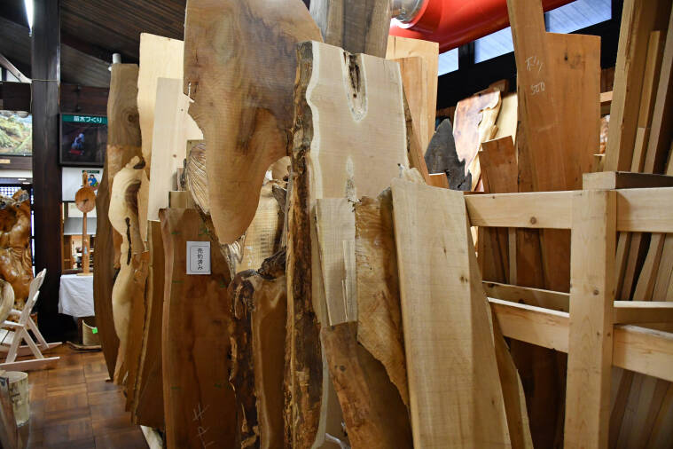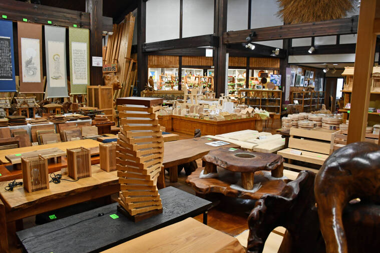 館内の売店では、真庭地域の木工素材、木工製品(食器・木のおもちゃなど)を多数販売しております。お茶やお菓子などの特産品の展示販売もあり、2階には約70名収納可能な研修室もございますので、お気軽にご連絡ください。