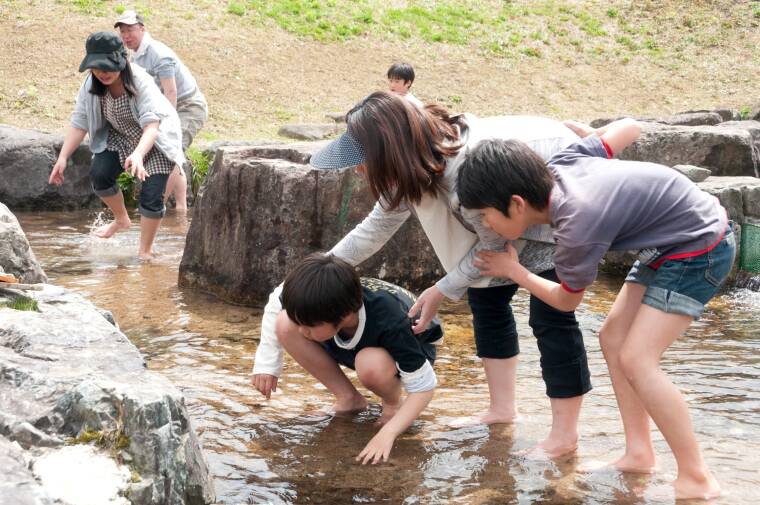 自然観察会などフィールド内を生かしたイベントも充実するほか、魚のつかみ取りなどの体験メニューも人気です。
