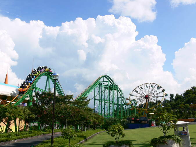 高原のグリーンに包まれる広大なアミューズメントパーク。