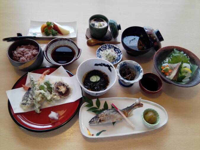 料理は、地元で採れた素材を使った山菜料理をはじめ、鯉料理や日本海の新鮮な魚介類を使用した海鮮料理が堪能できます。