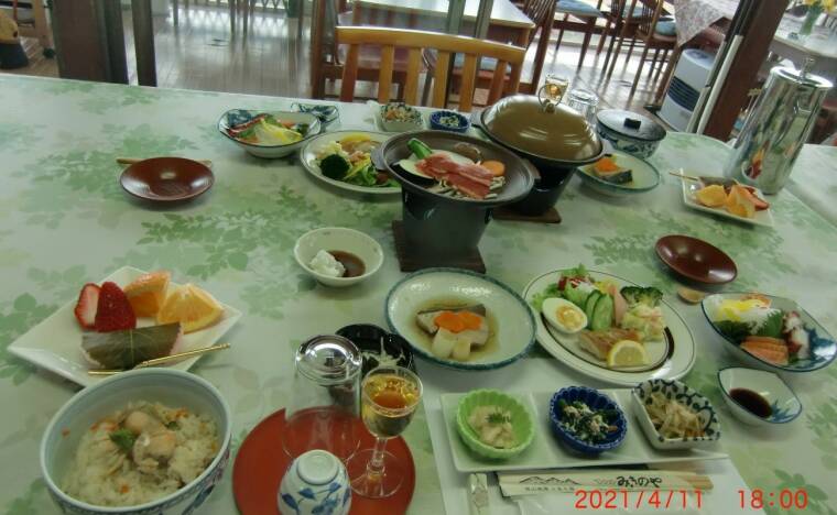 素泊り一人 7,700円(税込)、2食付 10,880円(税込)より、夕食 3,300円(税込)、朝食 1,200円(税込)、焼ソバセット夕食 1,980円(税込)