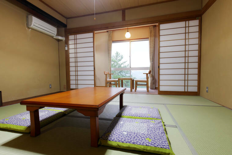 蒜山高原の東(車で25分)、湯原温泉の北(車で15分)に位置する宿泊施設「津黒高原荘」。