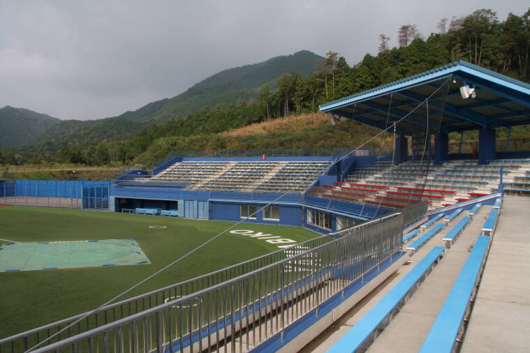 西日本で初めて全面人工芝を取り入れたスタジアム。従来のものより遙かに天然芝に近い特徴をもった新しいタイプのロングパイル人工芝。野球に限らず多目的に使用できます。