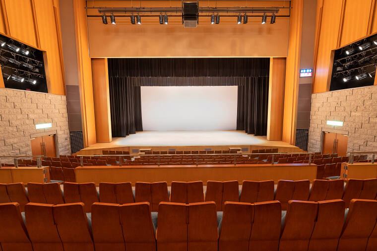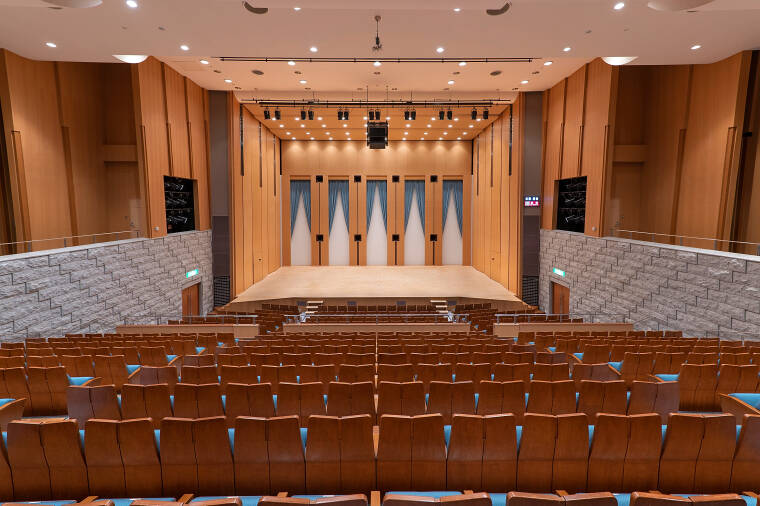 席数は501。用途に応じて七変化する機能とデザインを追求したホールです。