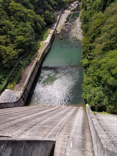 堤防の高さは73.5m、堤頂長194.4mの重力式コンクリートダム。