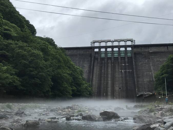 建設され、洪水調整および発電を目的とする「多目的ダム」。