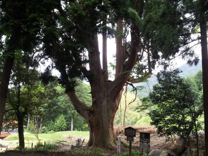 そして、佐波良・形部神社の境内にある大杉は、県下でも屈指の巨樹として知られており、目通り周囲が約8.8m、樹高が約43mあります。樹齢は約900年で、地元では「千年杉」と呼ばれ、親しまれています。