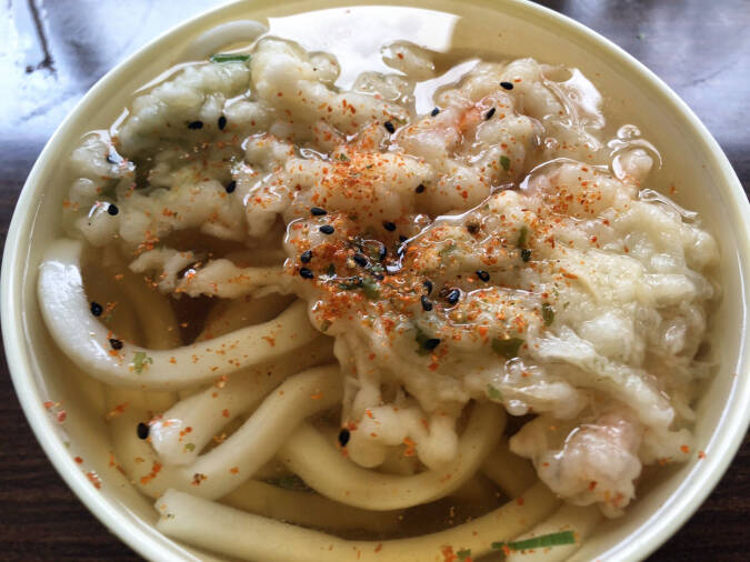 本場仕込みのさぬきの太麺と、かつお、イリ干し、昆布から採った本格派のだしが自慢。おにぎりとセットになった定食メニューはボリューム満点です。