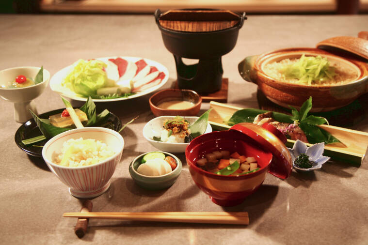 お料理は、岡山県北の人口千人の村・新庄村。“日本で最も美しい村”にも認定されているこの村で、自然の恵みをたっぷり受けた里山の食材を活かしたコース料理を召し上がっていただきます。