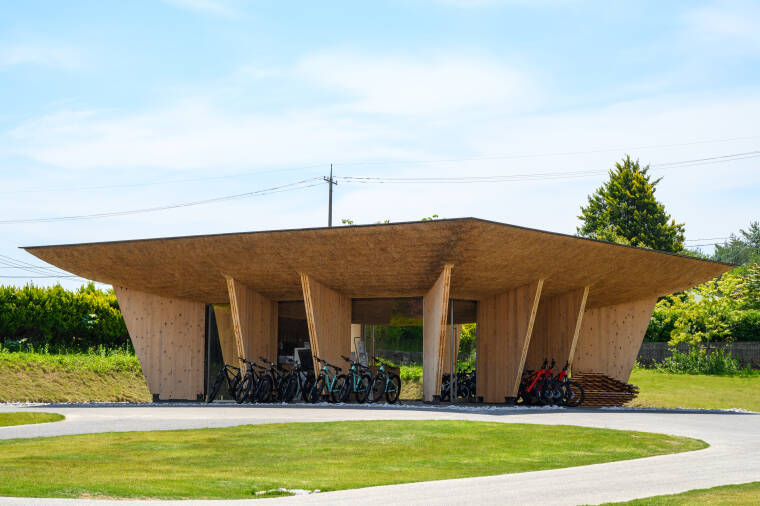 施設は、サステナブルを実践できるグッズを販売するビジターセンター・ショップ、芸術文化を発信する真庭市蒜山ミュージアム、体験プログラムを提供するサイクリングセンター、CLTパビリオン『風の葉』から構成されています。