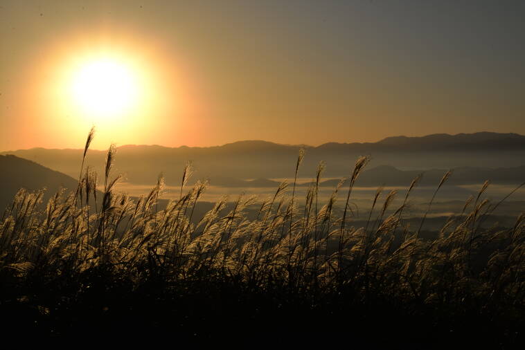 寒暖の差が増す秋の夜明けには、蒜山三座より立ち上る朝日と蒜山高原を包む雲海とのコントラストも楽しめることから撮影ポイントとしても人気を集めています。