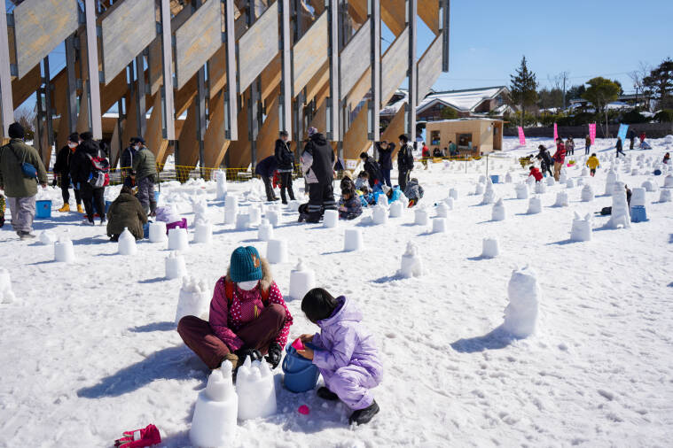 GREENable HIRUZEN「風の葉」周辺に来場者にミニかまくらを作ってもらいます。