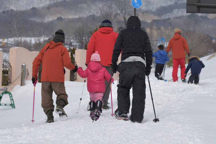 雪の上を歩くことができるスノーシューの体験会を行います。