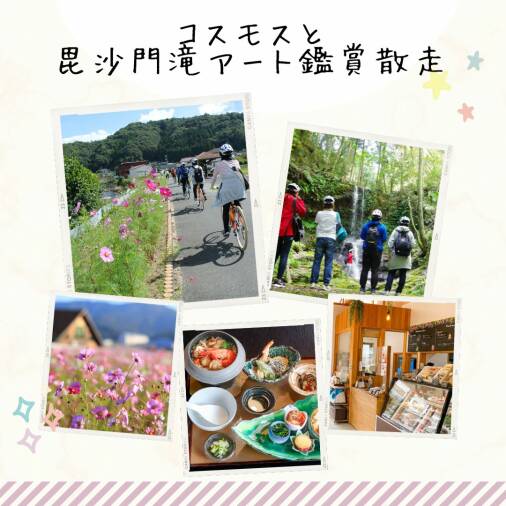 《自転車でお散歩!》コスモスと毘沙門滝アート鑑賞散走